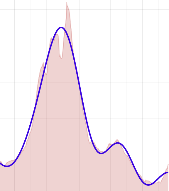 Here’s how I was thinking about the problem during my Thanksgiving pilgrimmage. Suppose you keep driving until the tank runs dry, all the while recording your distance and rate of fuel consumption, moment by moment. Retrospectively, then, it’s easy to determine the number that the range meter should have been displaying at any point during the trip: You just measure the distance backward from the point where the engine died, and by definition that’s the range remaining. But note that for every point along the route, this “retrodicted” range should be equal to the number of gallons left in the tank at that point multiplied by the fuel-use rate (in miles per gallon) averaged over the remainder of the distance. This fact suggests a perfect estimation strategy: You should always average the fuel-use rate over the remaining range. Unfortunately, the remaining range is exactly what you’re trying to calculate, so this algorithm is not very practical. But perhaps we can approximate it.