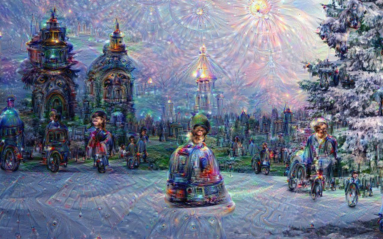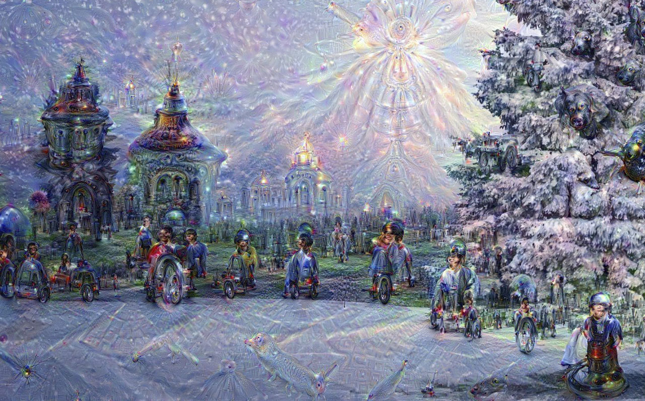 Update 2015-12-31: In the comments, Ed Jones asks, “If the original image is changed slightly, how much do the deep dreaming images change?” It’s a very good question, but I don’t have a very good answer.